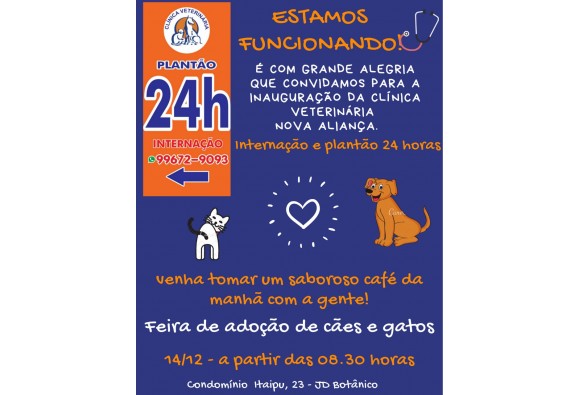 Será inaugurada no próximo sábado, dia 14 de dezembro, a Clínica Veterinária Nova Aliança - nossa parceira e parceira da proteção animal!